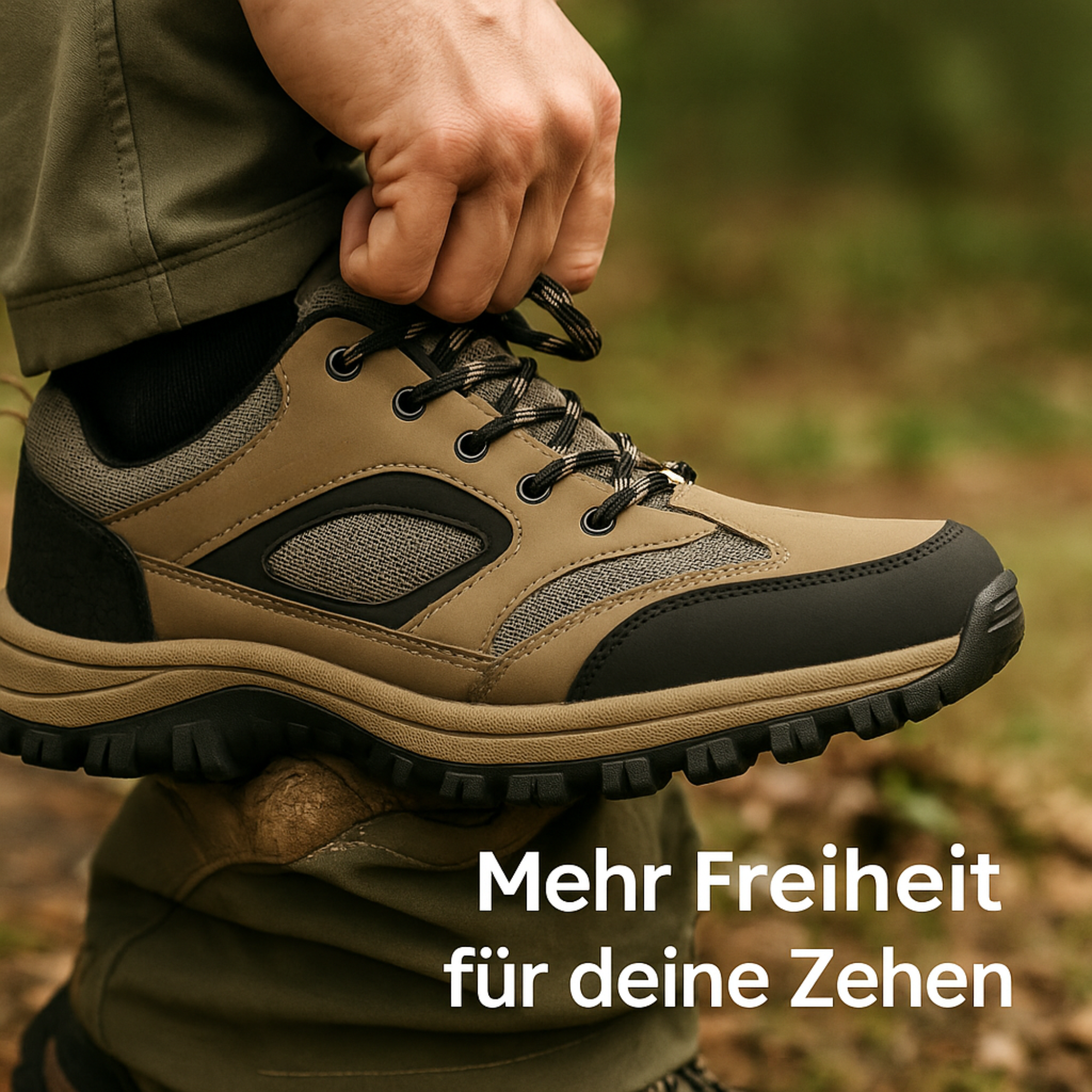 Viele Schuhe drücken im Zehenbereich oder schränken deine Bewegungsfreiheit ein. Der KomforTrek bietet einen extra breiten Zehenraum – so kannst du dich frei bewegen, und trotzdem hast du den Halt, den du brauchst.
