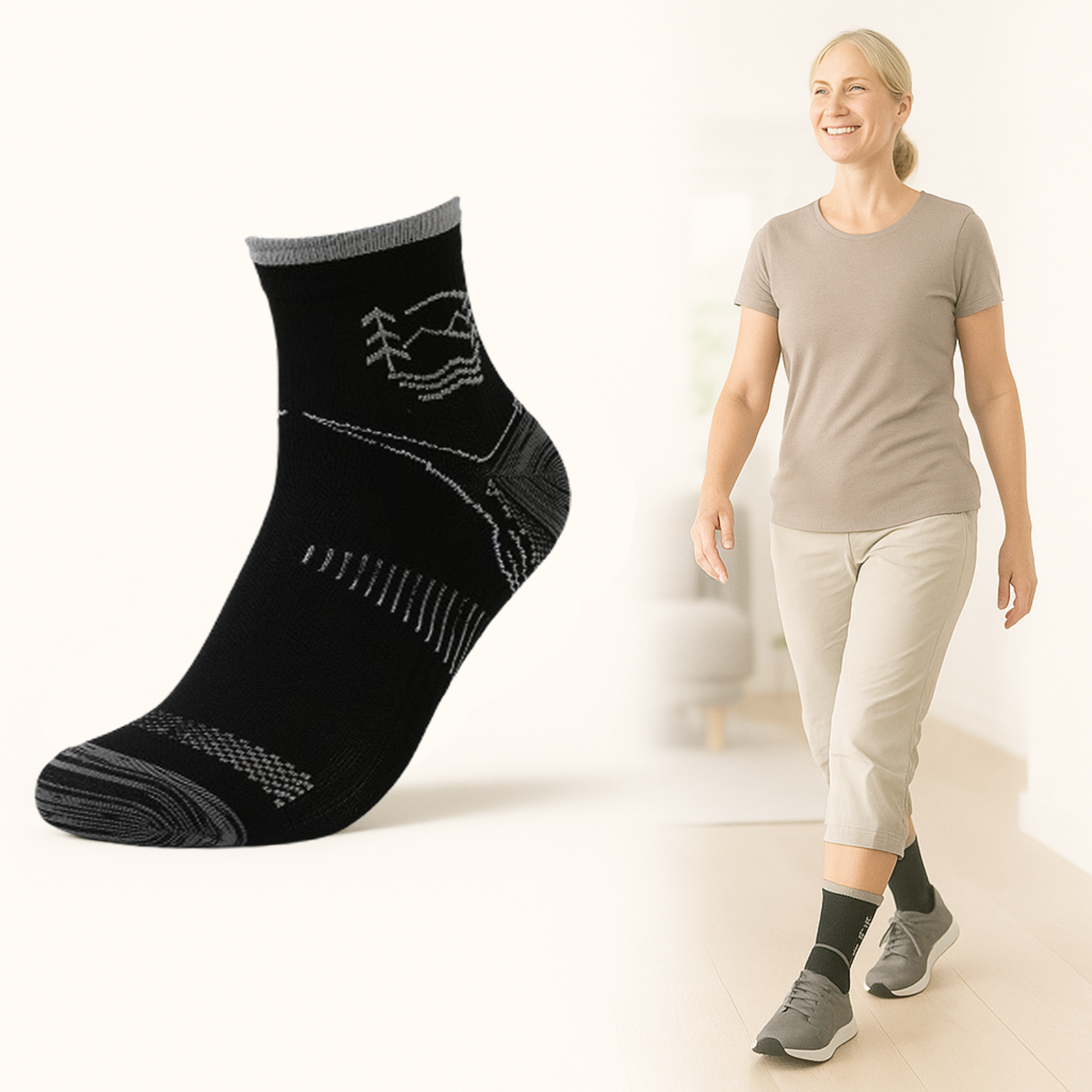 Normale Socken verrutschen, schnüren ein oder verlieren die Form. StepRelief sitzt passgenau und bleibt, wo er soll – dank ergonomischer Form und elastischem Bund. So kannst du dich frei bewegen, ohne ständig nachjustieren zu müssen.