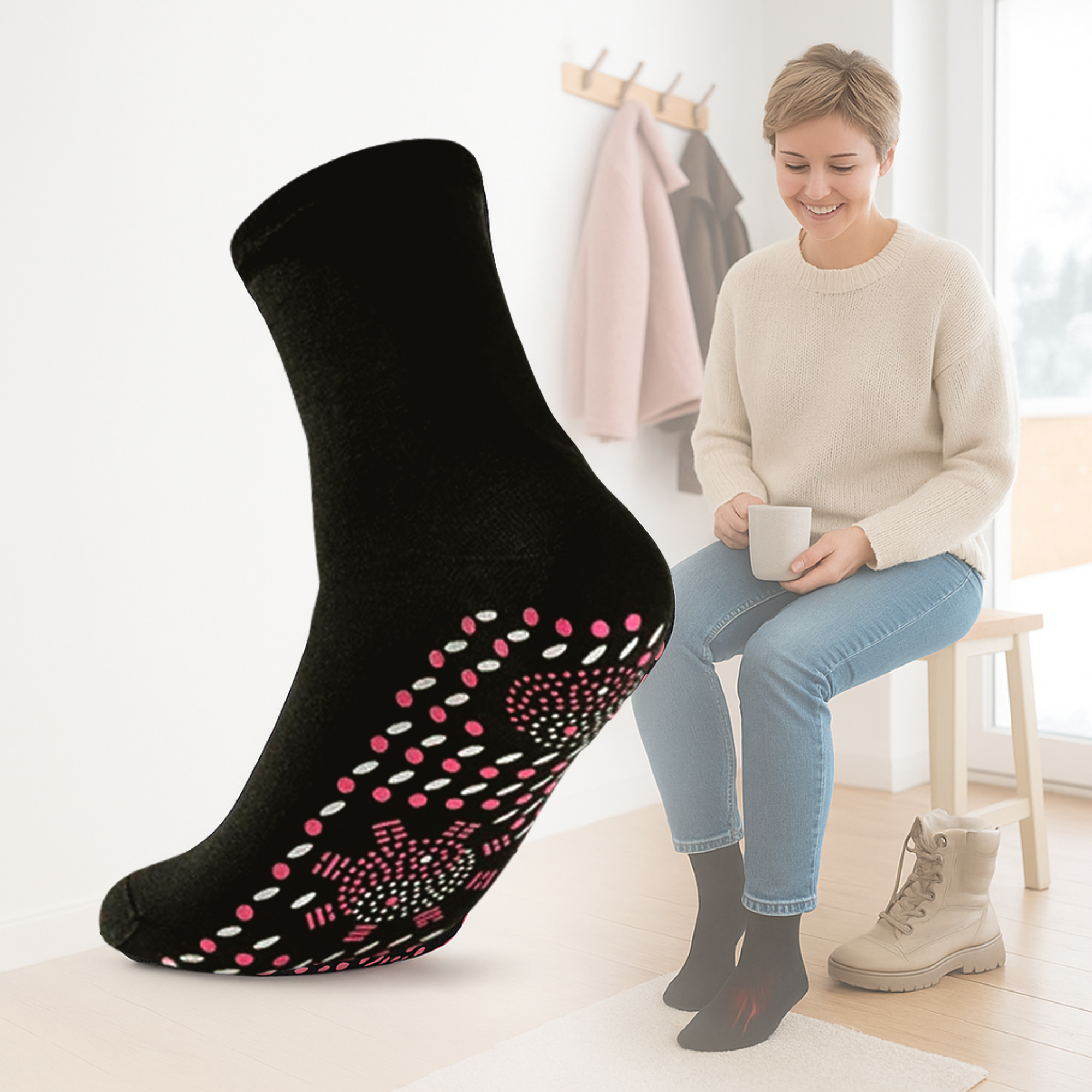 WarmNest – Thermosocken für Damen gegen kalte Füße | Selbstheizend & rutschfest | Für Winter, Zuhause, Schlaf & entspannte Abende